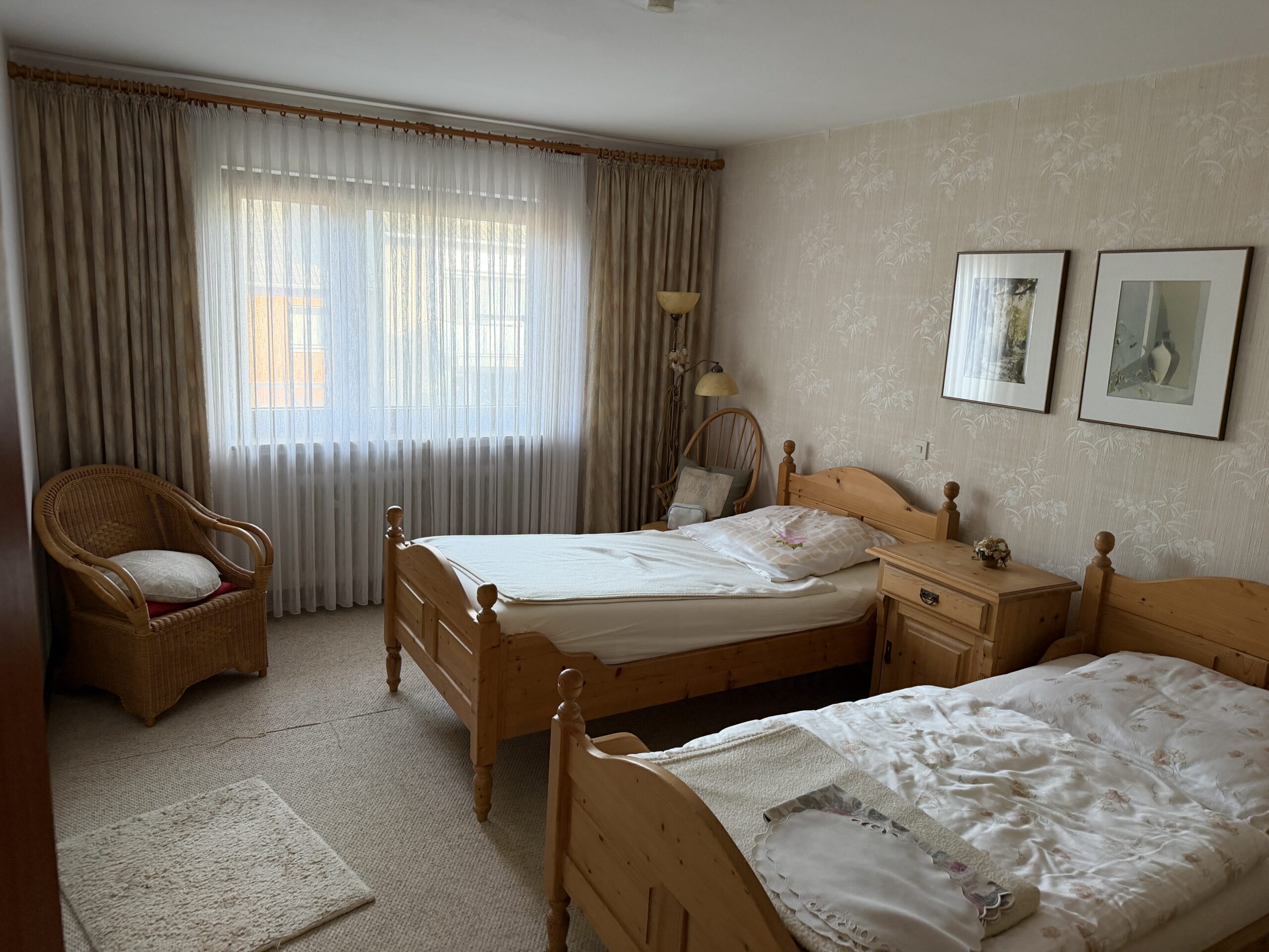 Im Obergeschoss des Hauses sind insgesamt drei Schlafräume sowie ein Badezimmer angeordnet. Der Grundriss ist hier besonders flexibel gestaltet, da die Innenwände in praktischer Leichtbauweise errichtet wurden. So lassen sich die Räumlichkeiten je nach den Bedürfnissen und Wünschen der Familie verändern, neu aufteilen oder auch zusammenlegen – sei es für ein großzügiges Elternschlafzimmer, einen Ankleideraum oder individuell zugeschnittene Kinderzimmer. Das Tageslichtbad wurde bereits vor einigen Jahren modernisiert und präsentiert sich mit weißen Sanitärobjekten sowie einer nahezu ebenerdigen Dusche.