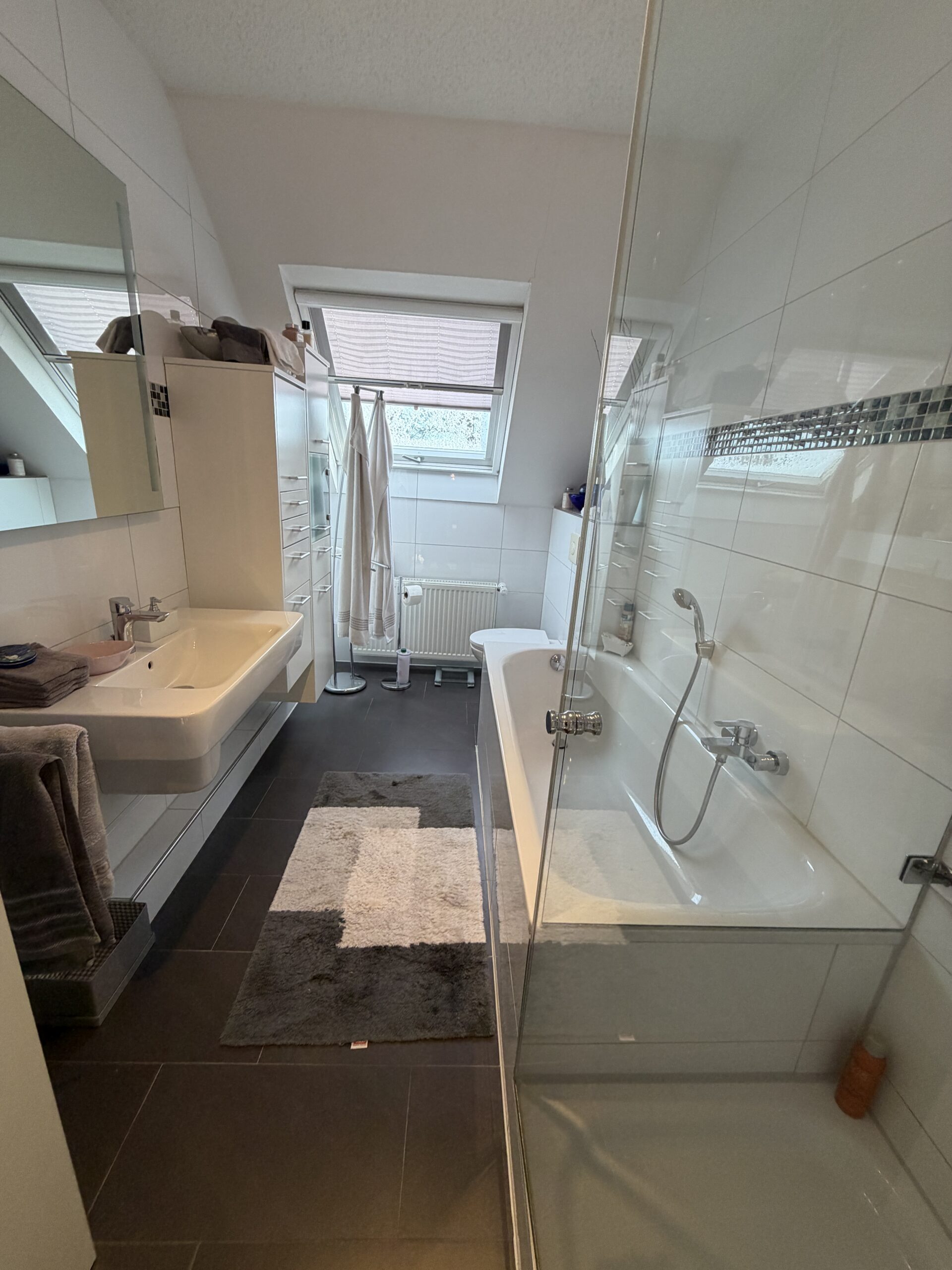 Des Weiteren verfügt die Wohnung über insgesamt vier Schlafräume mit unterschiedlicher Dimensionierung, die flexibel als Eltern- und Kinderzimmer, Ankleideraum oder Büro genutzt werden können. Abgerundet wird das Raumangebot durch ein hochwertiges Tageslichtbad mit weißen Sanitärobjekten, einer Badewanne und einer Dusche.