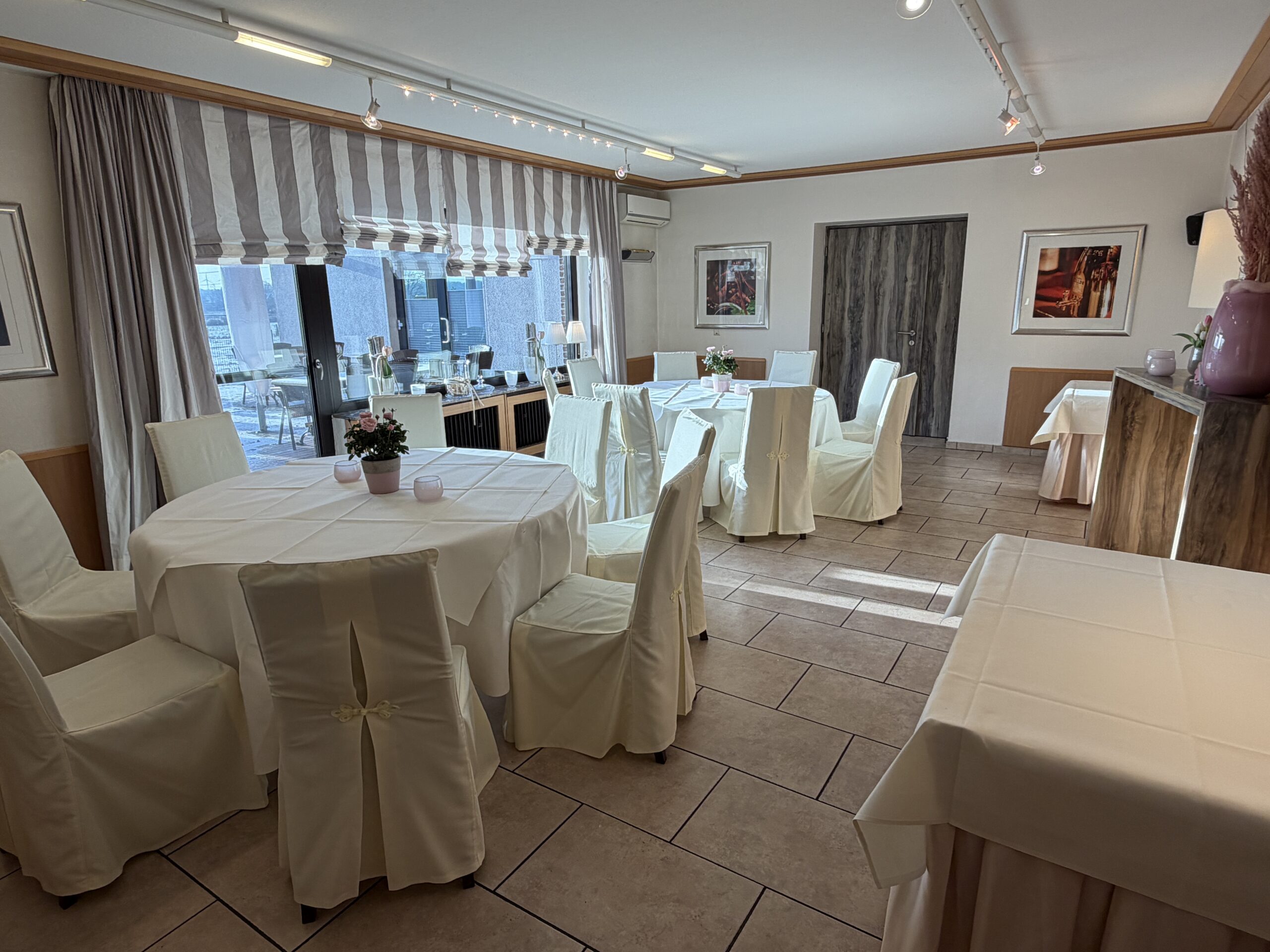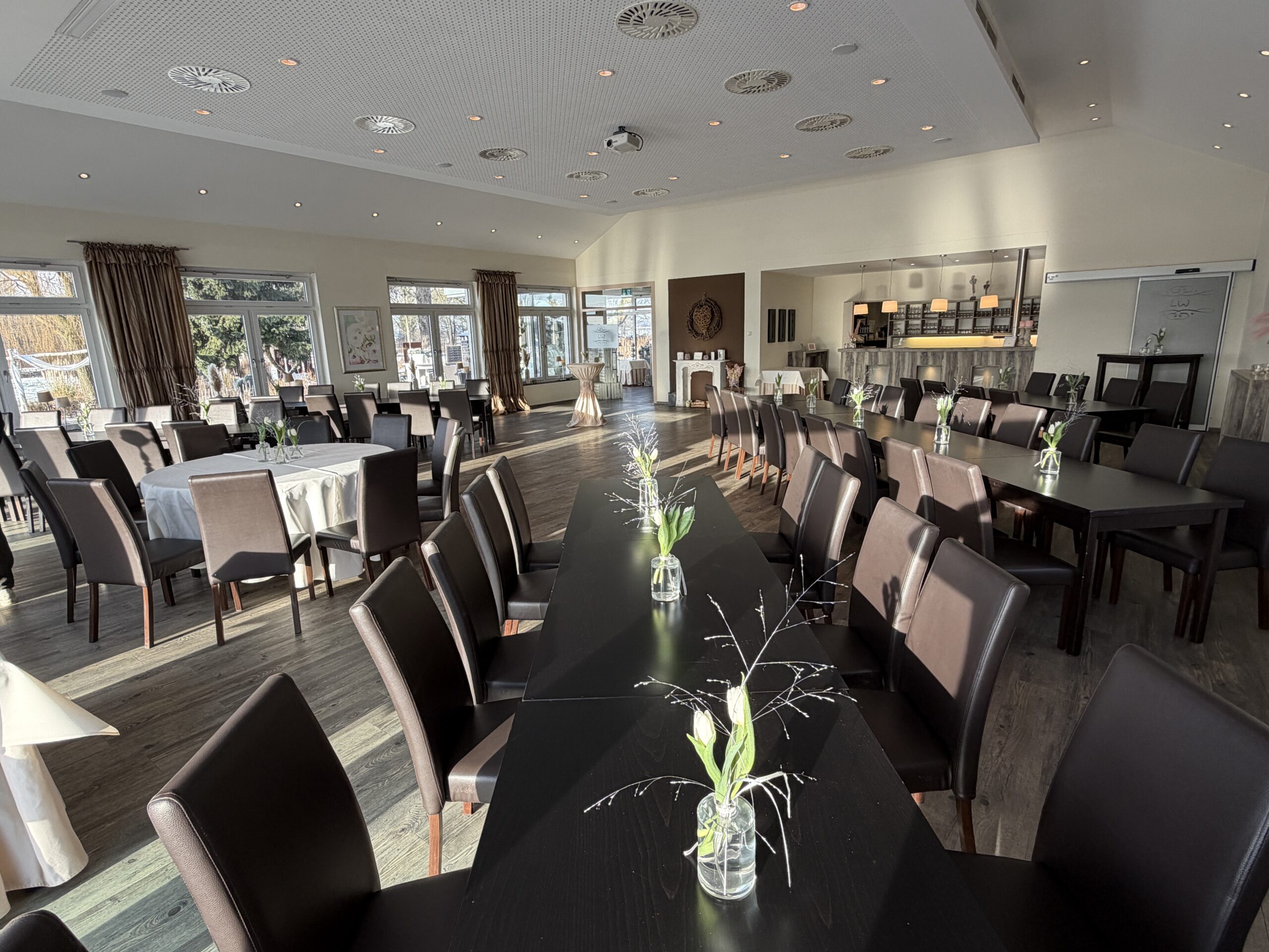 Der moderne Anbau als sinnvolle Erweiterung des jahrzehntelang bestehenden Gastronomiebetriebs wurde in Verbindung zur Bestandsimmobilie errichtet und berherbergt einen lichtdurchfluteten Festsaal für bis zu 112 Personen. Der Anbau ist über einen barrierefreien Eingang vom Garten aus zu erreichen und verfügt über einen eigenen Thekenbereich, der durch seine räumliche Anordnung das Raumkonzept des Festsaals nicht beeinträchtigt. Die Individualität einer jeden Festlichkeit ist durch die Möglichkeit einer flexiblen Bestuhlung gegeben, wobei auf Wunsch noch ein weiterer Raum in die Festlichkeit mit einbezogen werden kann. Räumlich komplettiert wird der Anbau durch eine Toilettenanlage für Damen, Herren und Menschen mit Beeinträchtigungen.