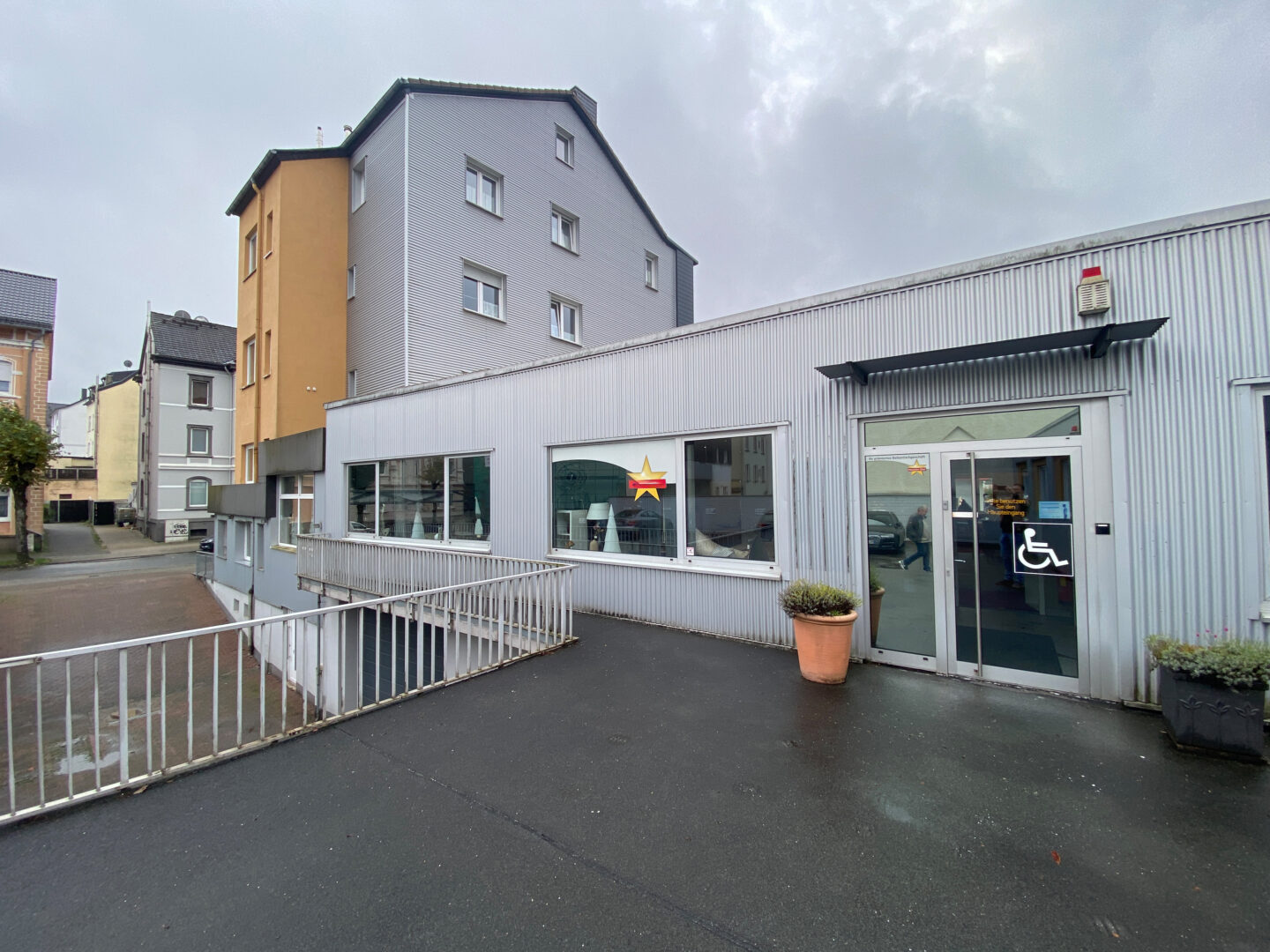 Im Erdgeschoss des Wohn- und Geschäftshauses erwartet Sie ein attraktives Ladenlokal mit einer großen Ausstellungsfläche, die sich über zwei Ebenen erstreckt. Die untere Ebene präsentiert sich offen und weitläufig, mit einer modernen Raumstruktur sowie zahlreichen bodentiefen und deckenhohen Schaufensterflächen, die ein hohes Maß an Transparenz und Helligkeit schaffen. Diese Flächen bieten ideale Bedingungen für eine ansprechende Warenpräsentation oder eine repräsentative Dienstleistungsfläche. Auf der oberen Ebene befinden sich abgetrennte Räume, die sich alternativ zur Ausstellungsfläche hervorragend als Büro- oder Beratungsbereiche nutzen lassen. Ein separater Nebeneingang führt direkt auf das angrenzende Parkdeck, das mehrere Kundenstellplätze bereithält und somit eine hervorragende Erreichbarkeit garantiert.